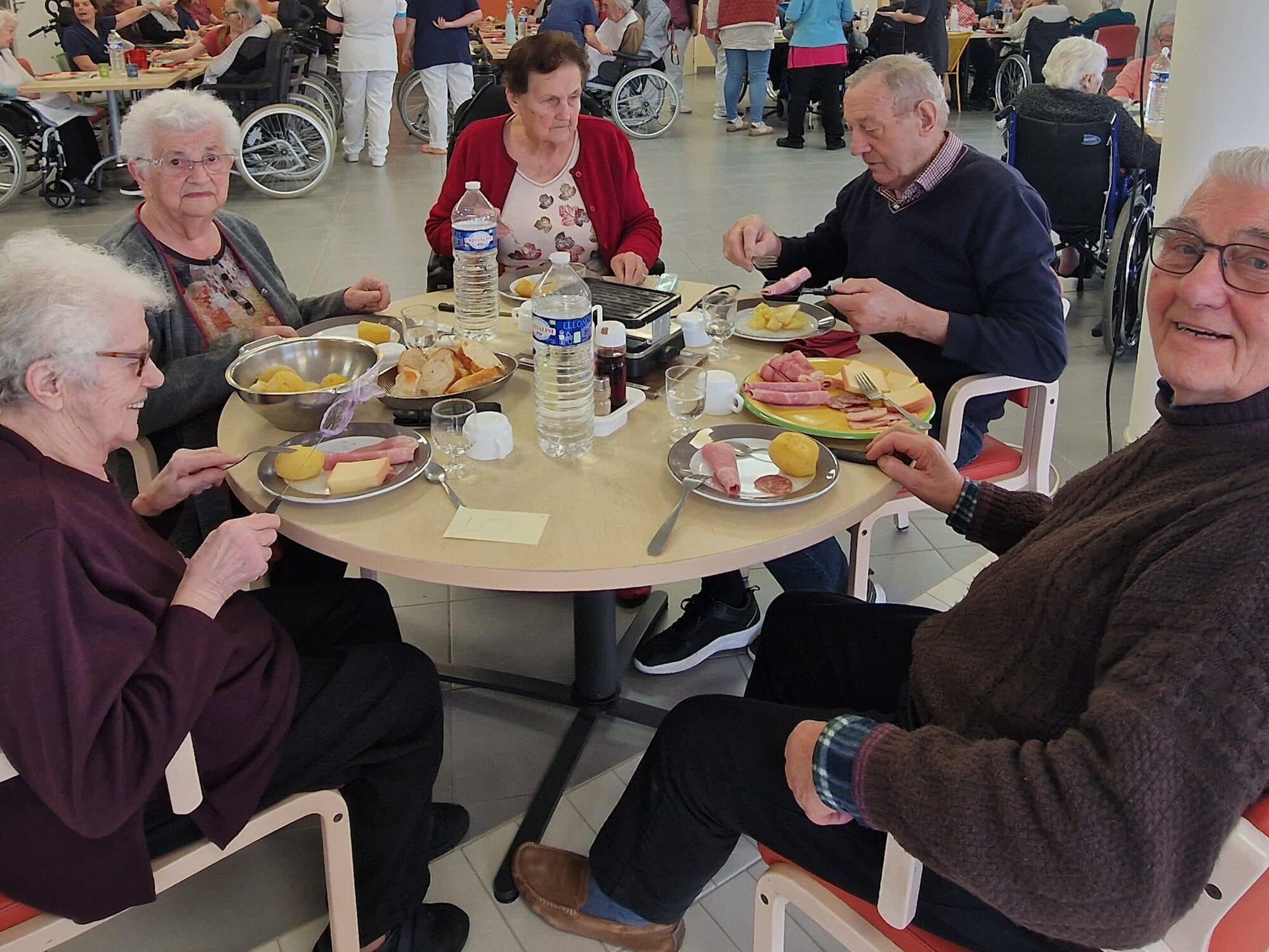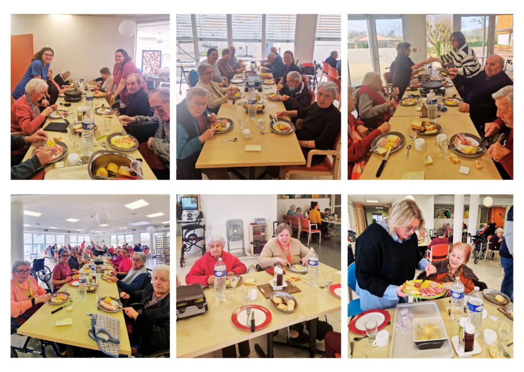 Côté gourmandise, le repas à thème du mois a réuni tout le monde autour d’un grand classique : la raclette ! Le personnel s’est joint aux résidents pour partager ce moment généreux autour des pommes de terre fumantes, du fromage fondant et de la charcuterie. Pour certains, c’était une première… et une belle découverte !